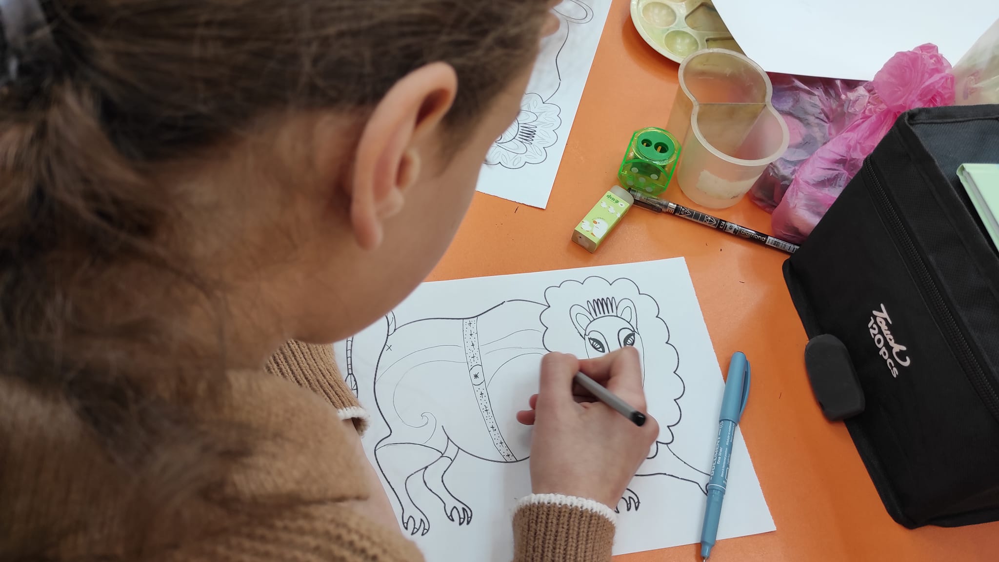 Більше про стиль народної художниці, її фантастичних звірів, орнаменти та кольори розповіла дітям Галина Герц - викладачка Мукачівська художня школа ім.М.Мункачі Мукачівської міської ради. Під її керівництвом діти розмальовували, а хтось і сам малював фантастичного лева з картини Примаченко. Яким уявили собі лева хлопці та дівчата і наскільки яскравими кольорами його наділили - дивіться на фото.